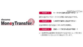 NTTドコモは27日、海外向け送金サービス「docomo Money Transfer」の提供を7月7日より開始すると発表した。送金手数料は一回につき一律1,000円となる。 事前に設定したドコモ口座から海外の金融機関窓口などへ送金することができる。また同社がフィリピンで出資提携しているPLDTの携帯電話事業運営子会社の電子マネー口座向け着金昨日により、ケータイからケータイへの海外送金も可能となった。送金上限額(送金手数料込み)は、1月あたり50万円、1日あたり45万円で、最低送金額(送金手数料込み)は1回あたり7,000円となっている。 サービス開始当初の送付先は、フィリピン、ブラジル、韓国、中国の4ヵ国で今後さらに拡大していくという。さらにiモードケータイだけでなく、スマートフォンにも順次対応させていくとしている。同サービスの開始にあたり、ドコモインフォメーションセンターでは、日本語と英語に加え、中国語、韓国語、ポルトガル語による電話の問い合わせに対応する。