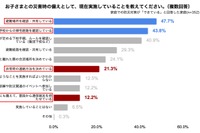 10代の1日あたりのSNS平均利用時間は88.7分で、3年前(2015年12月)と比べて約1.3倍も増加していることが、ジャストシステムが2018年11月13日に発表した調査結果から明らかとなった。 「モバイル&ソーシャルメディア月次定点調査(2018年10月度)」は、ジャストシステムが17歳~69歳の男女1,100人を対象に実施したもの。調査期間は2018年10月25日~10月29日。 スマートフォンユーザーに対し、情報収集に使うメディアについて聞いたところ、もっとも多かった回答は「スマートフォンからのインターネットやアプリ」75.7%。ついで、「テレビ」70.9%、「パソコンからのインターネット」63.3%、「新聞」28.4%、「雑誌」24.0%、「ラジオ」17.8%など(複数回答あり)。 いずれかのメディアを情報収集に使う回答者に、1日に接触する頻度がもっとも高いものを聞くと、「スマートフォンからのインターネットやアプリ」が10代から50代の女性、10代から40代の男性に最多で選ばれた。特に10代は男性が51.2%、女性が76.6%とどの年代よりも多く、男女ともに過半数を占めた。 1日あたりのアプリ平均利用時間をジャンル別に聞いたところ、10代は「動画アプリ」が96.2分ともっとも長く、「SNSアプリ」88.7分、「ゲームアプリ」83.5分などが続いた。前回調査時(2015年12月)と比べると、「動画アプリ」は約1.7倍、「SNSアプリ」は約1.3倍、「ゲームアプリ」は約1.4倍利用時間が増加していることがわかった。