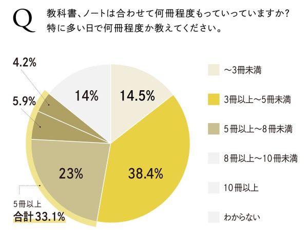 調査は2024年9月26日から9月30日の間、小学生の子どもを持つ保護者662名に対して行われた。その結果、特に荷物が多い日は教科書・ノートだけで5冊以上、最大1kg以上を持ち歩く子供が3割以上いることがわかった。