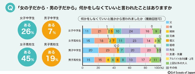 • 「女の子だから・男の子だから」何かをやらされたことはあるか (c) Girl Scouts of Japan