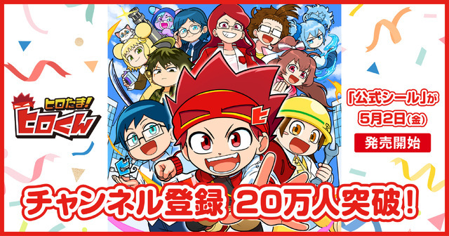 今回販売される公式シールと塗り絵は、『ヒロたま!ヒロくん』がチャンネル登録者数20万人を突破したことを記念するもの。キャラクターたちがプリントされた公式シール13種、お名前シール12種、塗り絵(1種5枚セット)がラインナップされた。