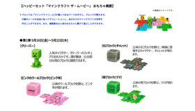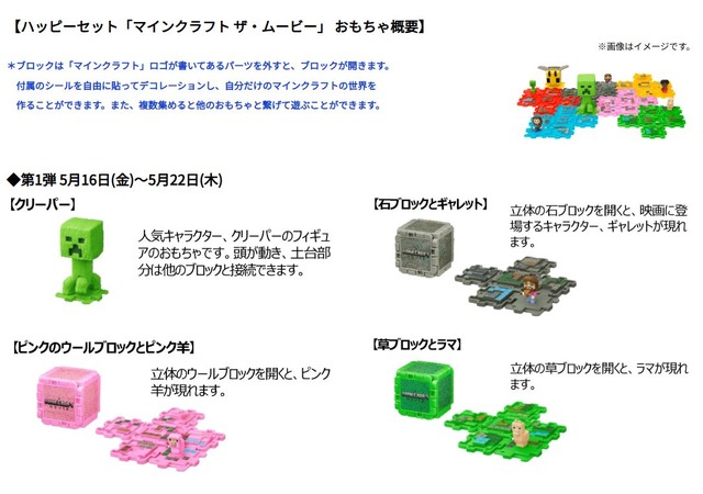 マクドナルドは「マインクラフト ザ・ムービー」と「ちいかわ」のハッピーセットを全国の店舗で2025年5月16日から販売開始する。販売期間は約4週間を予定しており、各シリーズのおもちゃは全8種類。