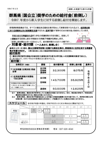 • 群馬県(国公立)奨学のための給付金(前倒し)