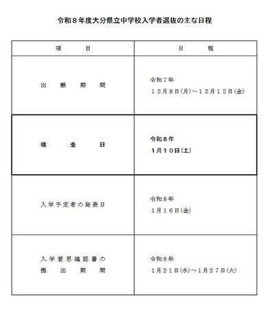 • 2026年度大分県立中学校入学者選抜のおもな日程