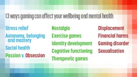 今回発表されたゲームがプレイヤーの精神的健康に及ぼす13項目は、以下の通りです。