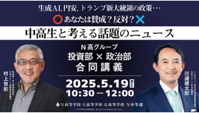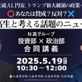 N高等学校・S高等学校・R高等学校(以下、N高グループ)の部活動「N高グループ投資部」「N高グループ政治部」は2025年5月19日、「投資部×政治部 合同リアル特別講義」を開催する。LINEヤフー会長と投資家・村上世彰氏がトランプ大統領の政策や円安、生成AIなど話題のニュースを中高生との対話で読み解く。