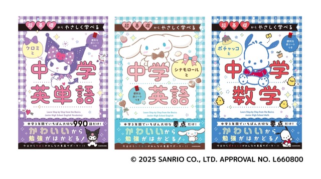 京進が監修した中学3年間の学びを復習できる問題集「超基礎からやさしく学べる」シリーズ3冊がKADOKAWAから2025年5月2日に発売された。サンリオの人気キャラクターと一緒に学べる。
