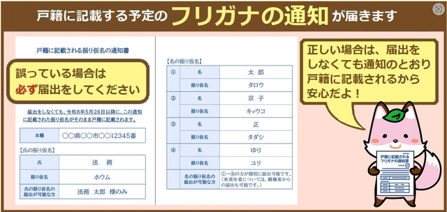 戸籍に記載予定のフリガナの通知が届きます