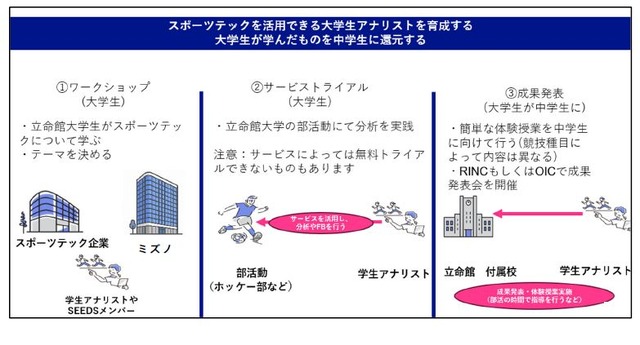 立命館大学は2025年5月28日、ミズノと共に、スポーツアナリスト育成プロジェクトを開始すると発表した。得られた知見を幅広い学校現場へ還元することを目指す。