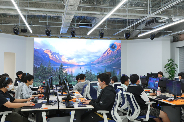 2つ目は「eスポーツやデジタル教育に打ち込める環境」です。2024年8月に竣工したばかりの新築ビル内に、1人1台の高性能ゲーミングPC、大型LEDモニターやNTT東日本が提供する高速回線を完備しました。音響や照明を駆使し、授業内容に応じてシーンを切り替えることによりeスポーツ・デジタルスキル向上に打ち込み、仲間との友情を育み、通いたくなる教室になっています。