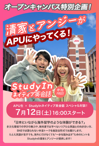 【APU生×StudyInネイティブ英会話スペシャル対談!「清家とアンジーがAPUにやってくる!」】