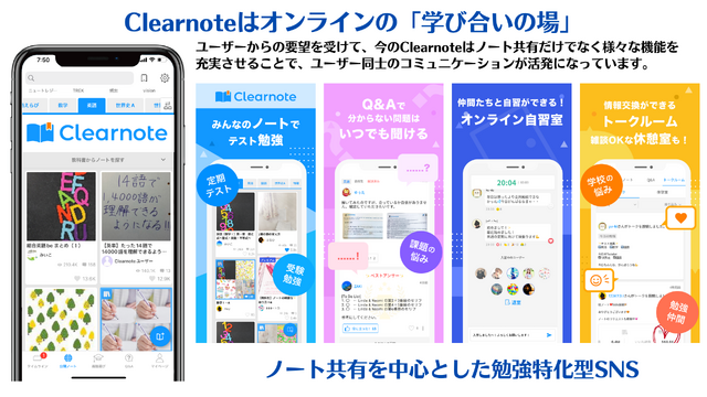勉強ノート共有アプリ「Clearnote」をご存知だろうか。2013年のサービス開始以来、多くの学生に利用され、現在は52万冊以上のノートが公開されている人気アプリだ。中高生を中心に毎月平均100万人以上が利用している「Clearnote」は、教科書名や学校名でノートを探すことができ、予習・復習や定期テスト、受験対策にも活用できる。ほかにも、以下のようなコンテンツがすべて無料で利用できる。