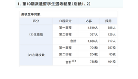 一方、地域の産学官が協働し、地域の高校生等への留学機会提供と留学機運醸成に取り組む「拠点形成支援事業」の採用者数は、石川県58人、静岡県51人、滋賀県57人、福島県32人、高知県31人。拠点地域で採用された高校生等には、各地域の企業等の拠出額に応じて、派遣留学生への奨学金等の費用の2分の1が支援される。