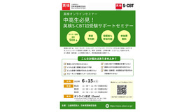 今回のセミナーでは、英検S-CBT受験のメリットや試験会場のようすなどの情報を提供し、英検S-CBTに対する不安を解消するとしている。対象は3級~準1級の合格を目指している人、受検者の保護者、学校・学習塾の先生など。特に、高校・大学入試を控え、英検の受験機会を増やしたいという中高生の参加を呼びかけている。