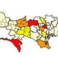 注意報レベルにある11保健所の発生状況をみると、「文京」3.75人がもっとも多く、「練馬区」2.38人、「町田市」2.25人、「新宿区」1.88人、「大田区」1.69人、「多摩小平」1.67人、「みなと」1.50人、「北区」1.43人、「多摩府中」1.43人、「渋谷区」1.00人、「池袋」1.00人と続いている。