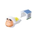 「飛び出す!シロしんちゃん」は、シロのコスプレをしたしんちゃんのフィギュア。小屋にセットして後ろから足を押すと、しんちゃんが前方に飛び出す。