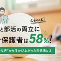 調査の結果、中学生の保護者の52%、高校生の保護者の64%が「勉強と部活の両立に悩んだことがある」と回答し、中高生全体では58%が同様の悩みを抱えていることがわかった。おもな悩みとしては、部活による勉強時間不足や部活疲れによる学習意欲の低下、成績の低下と焦り、子供の自主性の低さ、親子のコミュニケーションの問題があげられた。