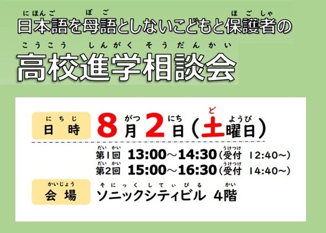 ◆日本語を母語としない子供と保護者の高校進学相談会2025