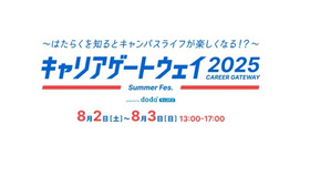 ベネッセi-キャリアが運営する「dodaキャンパス」は、2025年8月2日と3日に、大学1・2年生限定の大型イベント「キャリアゲートウェイ2025 Summer Fes. powered by dodaキャンパス」をオンラインで開催する。参加企業15社とともに、学生が自身の価値観と向き合う機会を提供する。