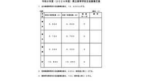 熊本県教育委員会は2025年7月1日、2026年度(令和8年度)県立高等学校生徒募集定員について公表した。2026年度の生徒募集定員は全日制が1万960人、定時制が440人、高等学校専攻科が10人で、いずれも前年度同数とした。