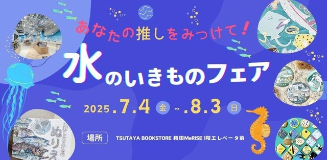 TSUTAYA BOOKSTORE 梅田MeRISEと関西大学は、2025年7月4日から8月3日まで「あなたの推しをみつけて!みずのいきものフェアvol.2」を開催する。関西大学梅田キャンパスにてトークイベントやアート展が行われる。