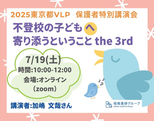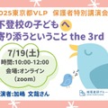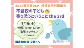 東京都バーチャル・ラーニング・プラットフォーム(VLP)事業が主催する「不登校の子供へ寄り添うということセミナー」が2025年7月19日、保護者を対象にオンラインで開催される。参加費無料、申込みは7月18日まで。