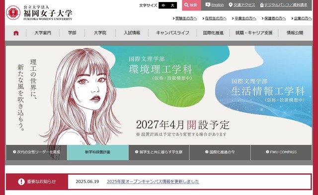 福岡女子大学は2025年7月3日、トランスジェンダー学生の受入れを発表した。2028年度に受験し、2029年度に入学する学生から受入れを開始する。性自認が女性のトランスジェンダー学生の受験・入学を認める動きは、全国の女子大学で広がりつつある。