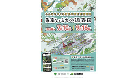 東京いきもの調査団は、実施3年目となる都民参加型の調査イベント。野生生物目録作成プロジェクトの一環として、スマホアプリ「Biome(バイオーム)」を活用した参加型のいきもの情報調査と、専門家による調査や既存の文献・標本データなどを収集・蓄積し、デジタル版野生生物目録「東京いきもの台帳」の作成を進めている。
