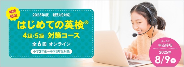 英会話教室を運営するイーオンは、2025年10月5日に行われる英検に初めて挑戦する子供向けに、オンライン校のキッズクラスで「はじめての英検4級・5級対策コース」を開講する。英語学習の重要性が高まる中、イーオンは資格取得を目指す子供たちをサポートするための新たな取組みを開始する。申込期限は8月9日。