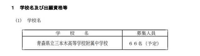 青森県教育委員会は2025年7月14日、2026年度(令和8年度)県立中学校入学者選抜要項をWebサイトに掲載した。三本木高等学校附属中学校(十和田市)において66名を募集する。出願は10月27日より11月4日まで。適性検査および面接は11月29日および30日。
