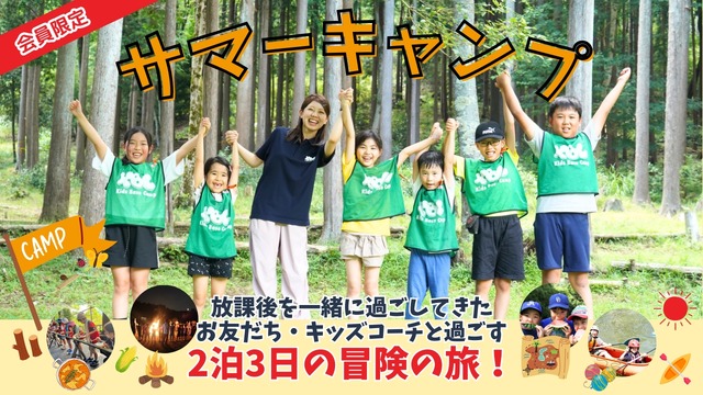 大自然の中さまざまなプログラムを体験するサマーキャンプは、毎年小学生約1,000名が参加し、民間学童保育としては国内最多級の規模を誇る。全6か所のキャンプにて合計16回開催するほか、初めてアドベンチャーキャンプの開催も決定。小学2年生以上を対象に、川遊びやテント設営などスペシャルプログラムを実施する。また、KBCとして初となる、サマーキャンプの参加による非認知能力の変化を可視化する調査も実施し、教育的効果の検証にも取り組む。