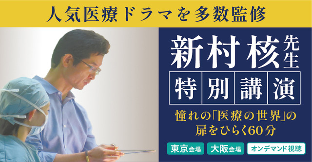 特別講演「医師を目指す君たちへ」は、2部構成で実施される。第1部は、『ドクターX』『コード・ブルー』などの人気医療ドラマを多数監修した脳外科医・新村核氏による特別講演。手術を含めた医療のリアル、患者や社会との向き合い方、ドラマを通して描かれる医師のやりがいについて語られる予定だ。第2部では、医系専門予備校メディカルラボにて1万人以上を医学部合格に導いたカリスマ講師・可児良友氏が、医学受験の最新動向について解説する。医学部受験の難しさと特殊性、面接試験対策、合格した生徒の学習法など、医学部受験を目指すご家庭にとって有益な情報が提供される予定だ。