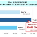 反面、普段からメイクをしている子供は、約8割が肌のトラブルを経験しており、全体の肌トラブル経験が約半数に対し、かなり多くの割合であることがわかった。また、メイク不使用の子供は、全体より少なく、約4割半であり、これらを踏まえてメイクによる一定の影響があると考えられる。特に日焼け後の肌荒れについては、メイクをしていることで乾燥などの肌荒れを感じやすくなっていることが考えられる。小学生のメイク利用が高まる中で、肌トラブル率も増加することが考えられ、夏場の乾燥対策や紫外線対策がさらに重要であることが伺い知れる。