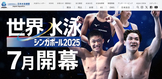 世界水泳選手権シンガポール2025(英名:World Aquatics Championships Singapore 2025)が7月11日から開催されている。競泳は7月27日から大会最終日の8月3日までの8日間にわたって行われる。