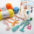 「からんころん組みひも機」では、ペーパープレートや目玉クリップを使い、組みひもを組むための装置を作る。装置は簡単に作れるため、さまざまな種類の組みひもを組んでみることができる。かわいい組みひもを作るアレンジ方法も紹介されており、自分好みのアイテムを作ることができる。