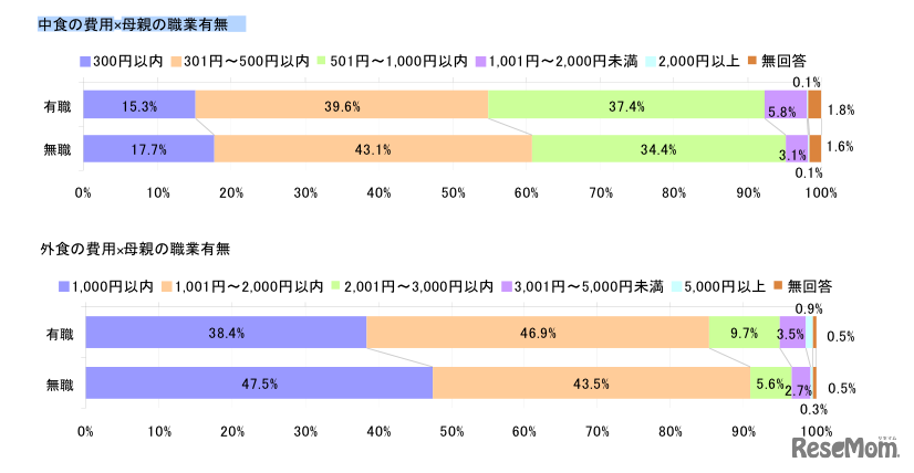 食事の費用と母親の職業有無