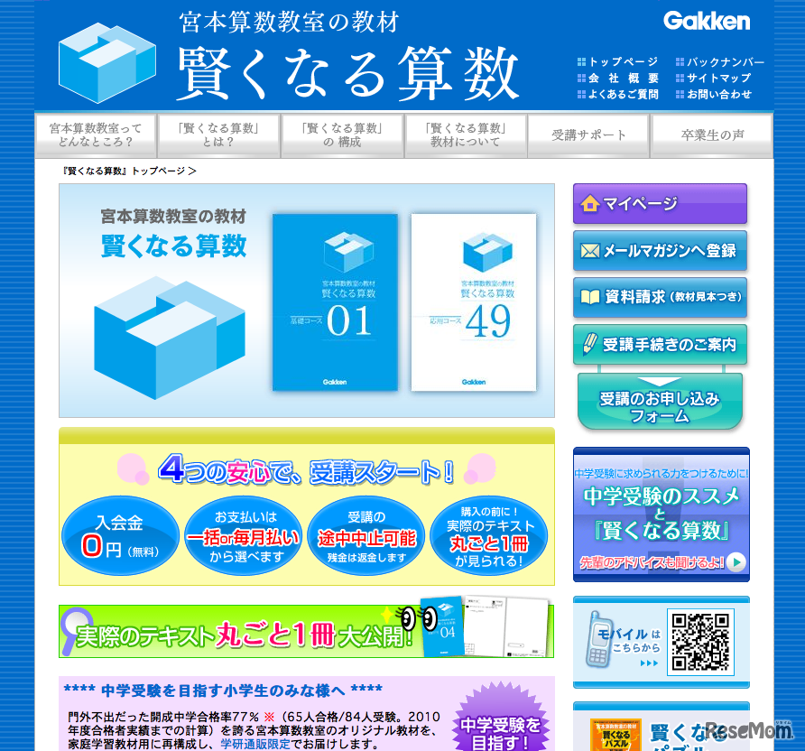 学研教育出版は、「宮本算数教室の教材 賢くなる算数・応用コース」の受講予約申し込みを11月1日より開始した。