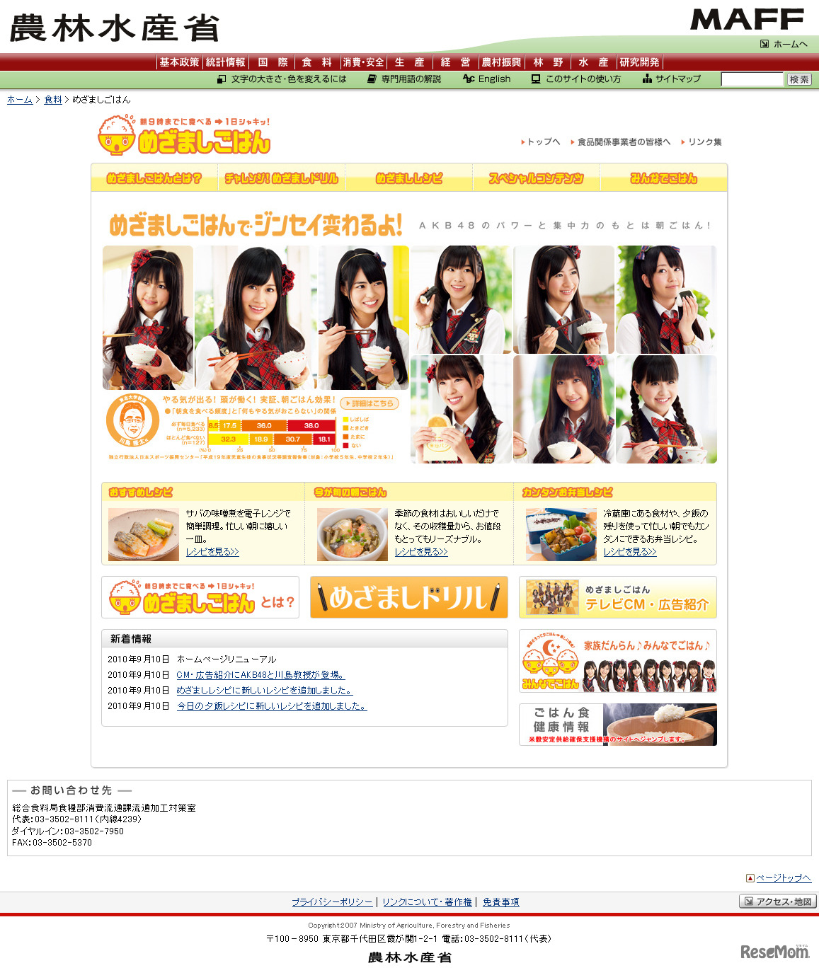 政府インターネットテレビ番組の「徳光&木佐の知りたいニッポン!」では、脳や身体にもいい「めざましごはん」で朝食の大切さを伝えている。