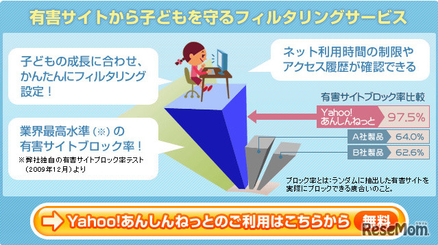 ヤフーは、有害サイトから子どもを守るフィルタリングサービス「Yahoo!あんしんねっと」のiPad用アプリ「Yahoo!あんしんねっとHD」の無料ダウンロード提供を開始した。