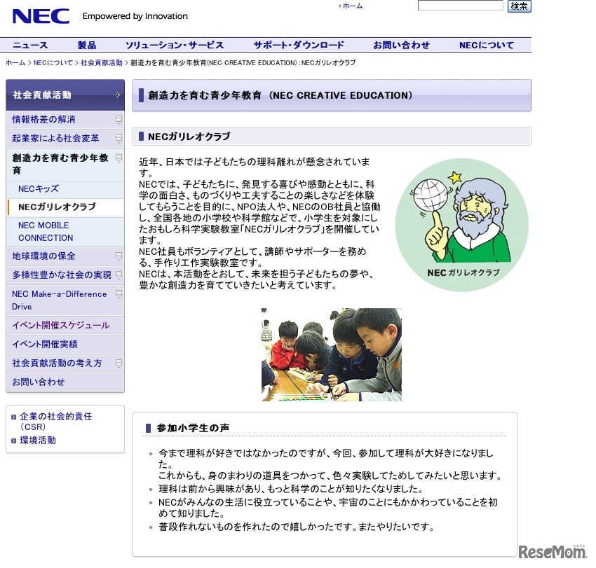 NECは11月13日、LED(発光ダイオード)を使って、音を伝える仕組みを学ぶ小学生向け科学実験教室「NECガリレオクラブ」を開催する。