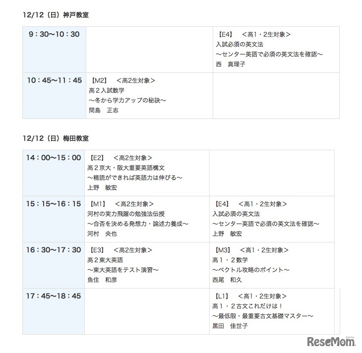 Z会は11月11日、関西圏の大学受験教室「Z会マスターコース」において、高1〜2年生を対象にした特別授業「冬期講習直前講座」を行うと発表した。