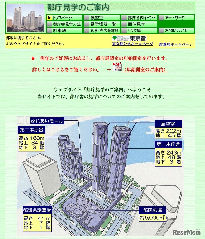東京都は11月15日、都庁展望室から平成23年の年始開室について概要を発表した。平成7年から毎年元日に庁舎45階の展望室を一般開放してきた。