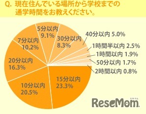 現在住んでいる場所から学校までの通学時間をお教えください