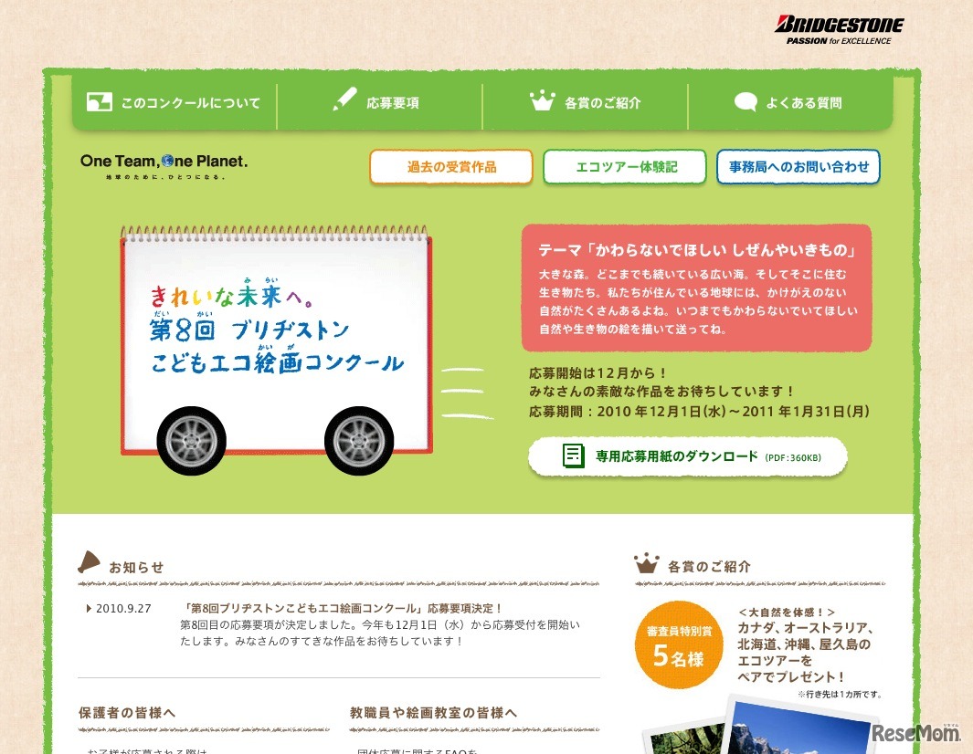 ブリジストンは12月1日から、「第回ブリジストンこどもエコ絵画コンクール」の応募受付を開始する。