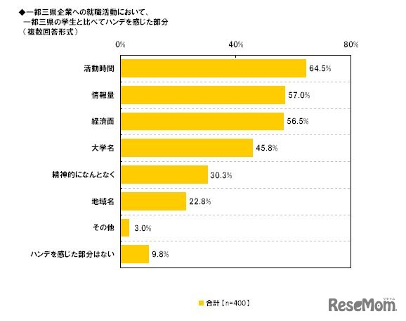 1都3県企業への就職活動において、一都三県の学生と比べてハンデを感じた部分(複数回答形式)