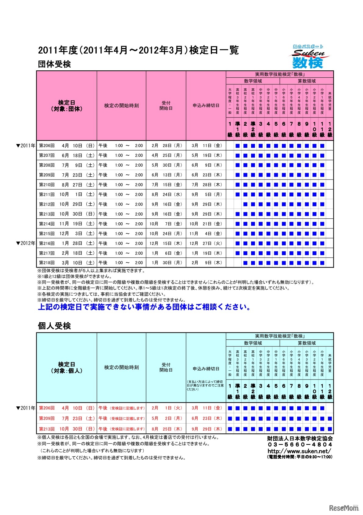 日本数学検定協会は、実用数学技能検定「数検」、「児童数検」、「通信検定」等の検定制度の改定について発表した。これまでより公平性を確保し、わかりやすい検定体系、受験しやすい検定制度などの観点から見直しを図ったとしている。