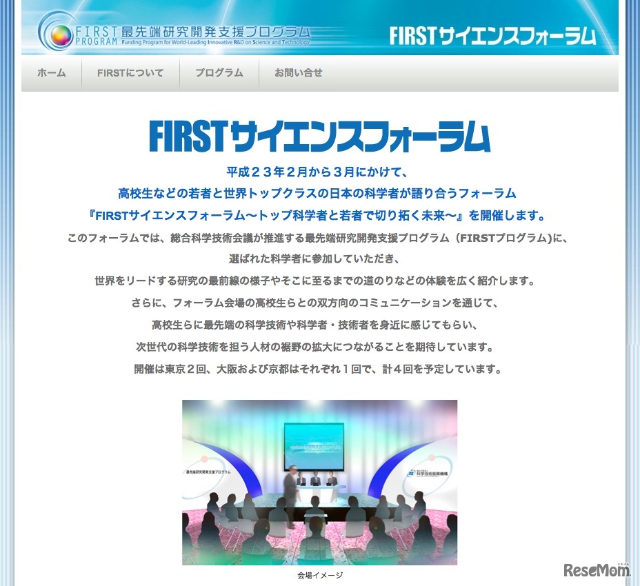 独立行政法人科学技術振興機構は12月8日、高校生などの若者と世界トップクラスの日本の科学者が語り合うフォーラム「FIRSTサイエンスフォーラム〜トップ科学者と若者で切り拓く未来〜」の開催を発表した。