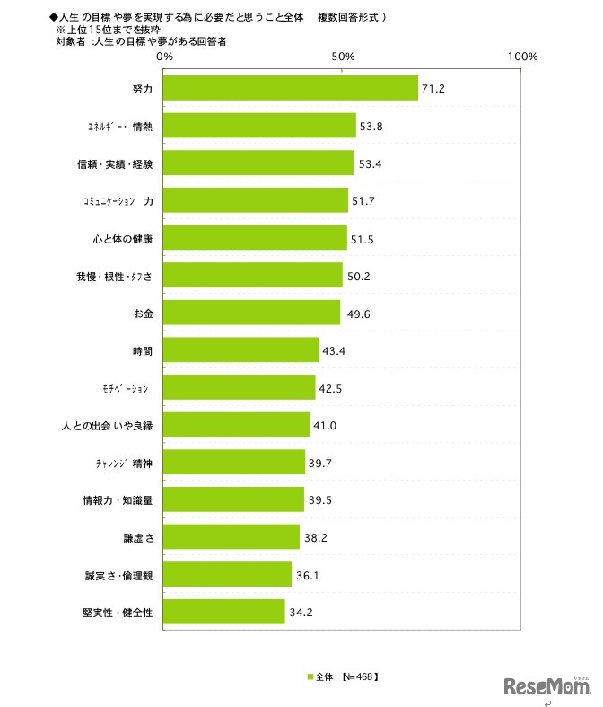 人生の目標や夢を実現する為に必要だと思うこと 全体(複数回答)