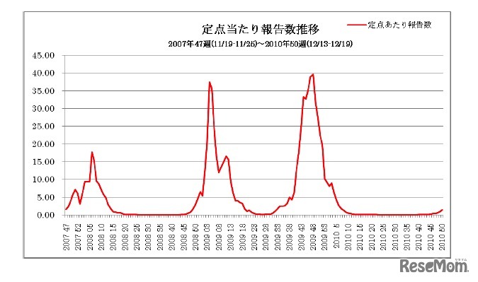 厚生労働省は12月24日、第50週(12月13日〜19日)のインフルエンザ流行レベルマップを更新。流行開始の指標を超え、インフルエンザが流行シーズンに入ったと発表した。