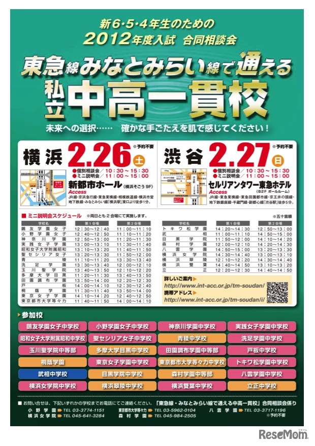 首都圏の中学入試は一段落したようだが、早くも新6・5・4年生のための2012年度私立中高一貫校の合同相談会が開催される。
